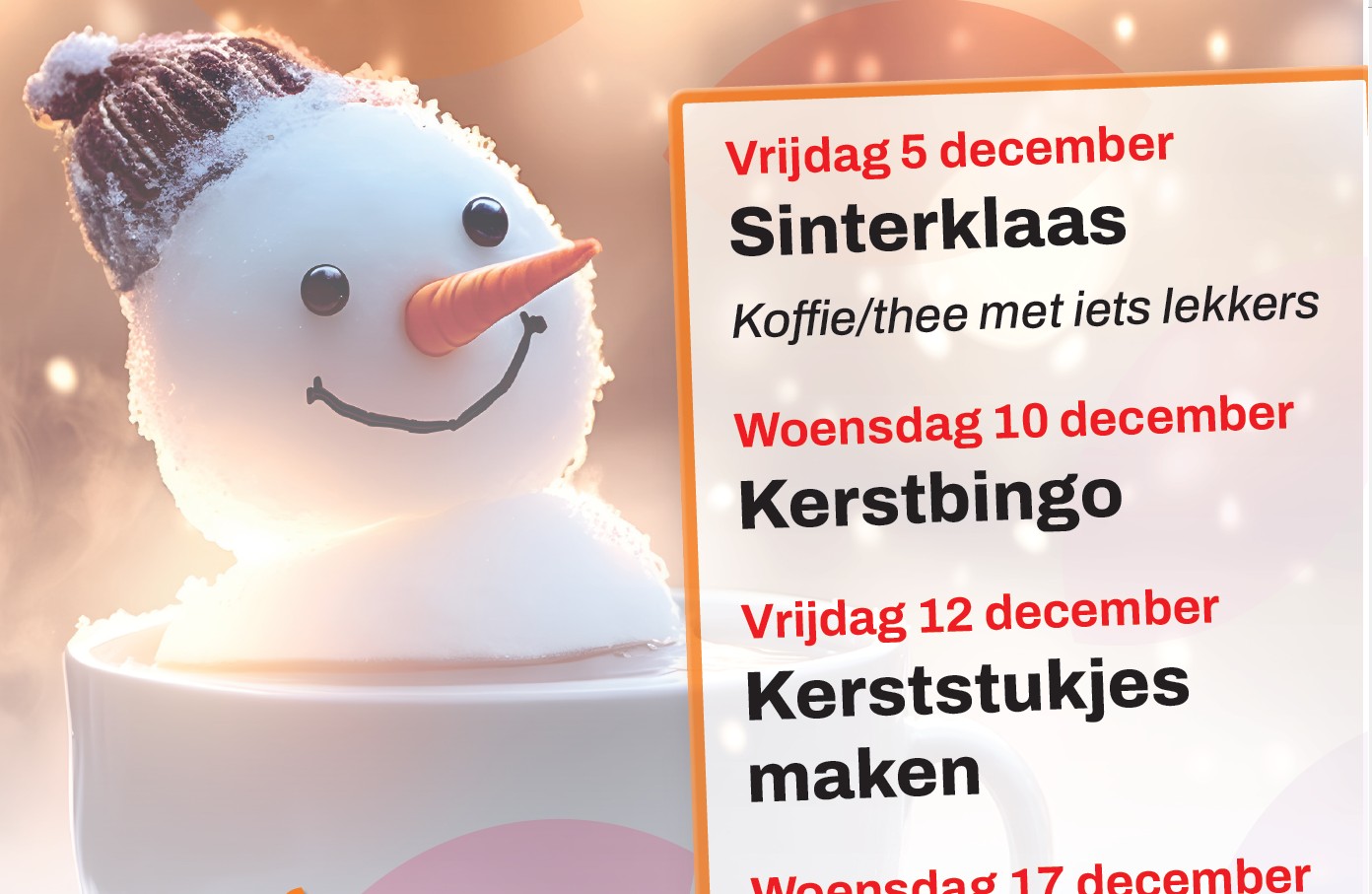 In de maand december organiseert Ontmoetingscentrum De 5 Molens veel leuke activiteiten rond de feestdagen. Wat dacht u van het Sinterklaasfeest? Of samen kerststukjes maken? Koffie of thee met een oliebol op oudjaarsdag? De keus is aan u!