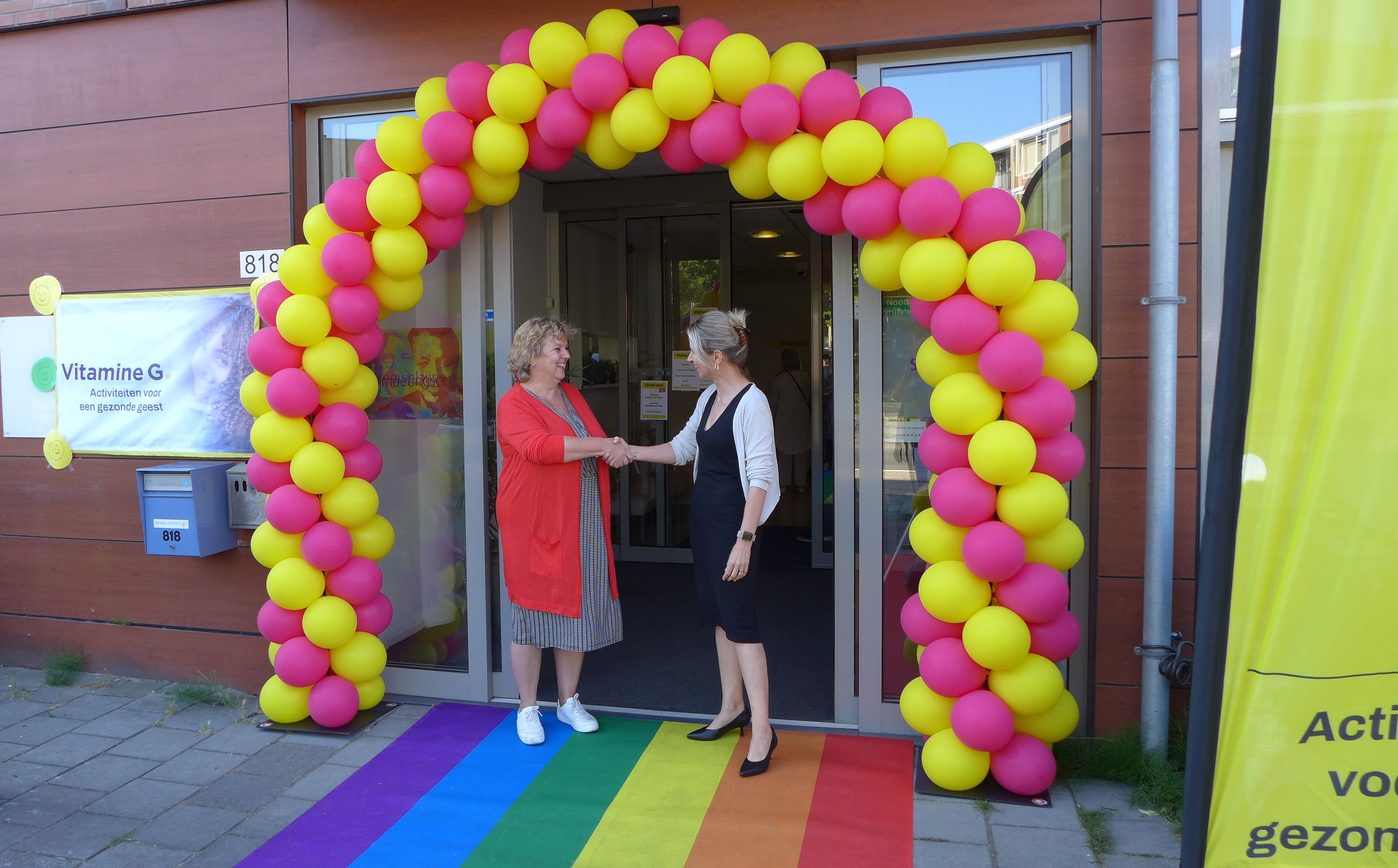 Op donderdag 1 september jl. is Vitamine G officieel van start gegaan in Schiedam. Deze nieuwe inloopvoorziening voor mensen met milde tot middelzware psychische klachten werd geopend door wethouder Petra Zwang, die hiermee haar eerste officiële opening in functie verrichtte. Zij haalde hiervoor symbolisch een groot touw uit de knoop. Daarna konden de ruim 100 bezoekers van de feestelijke opening de hele dag kennismaken met het activiteitenaanbod.